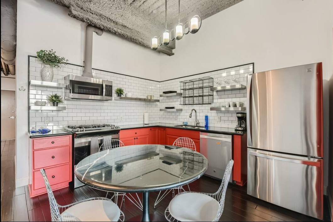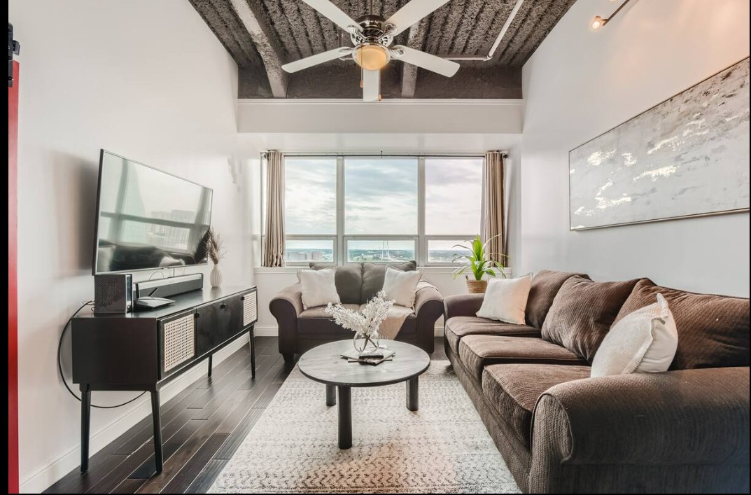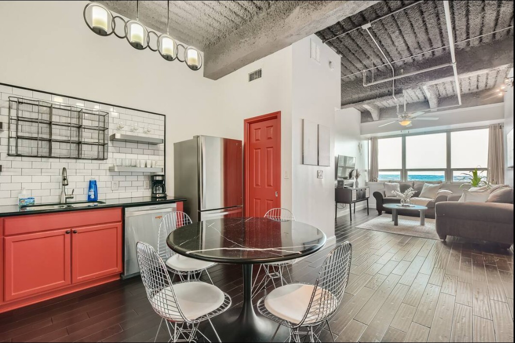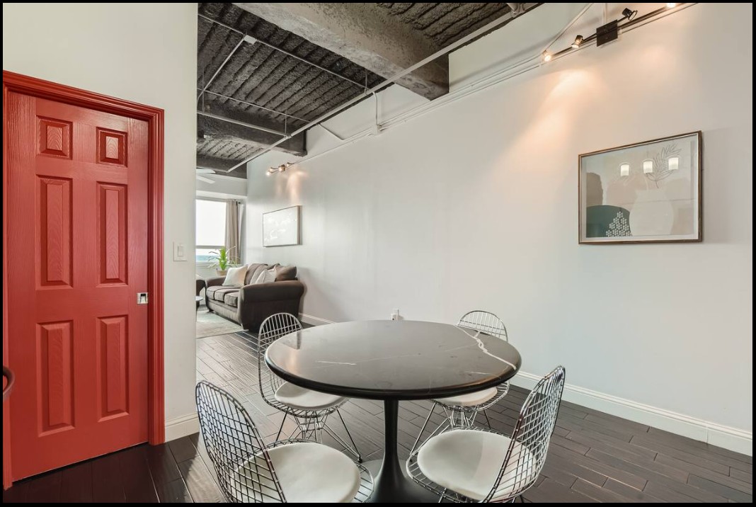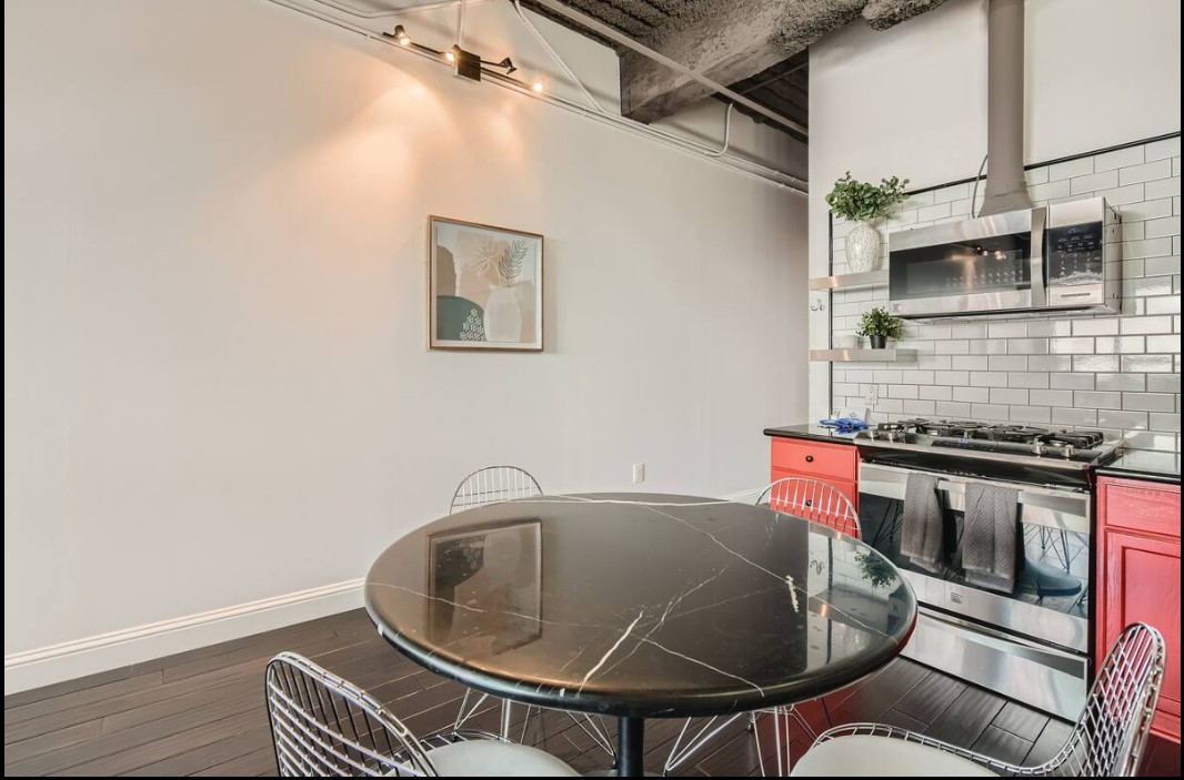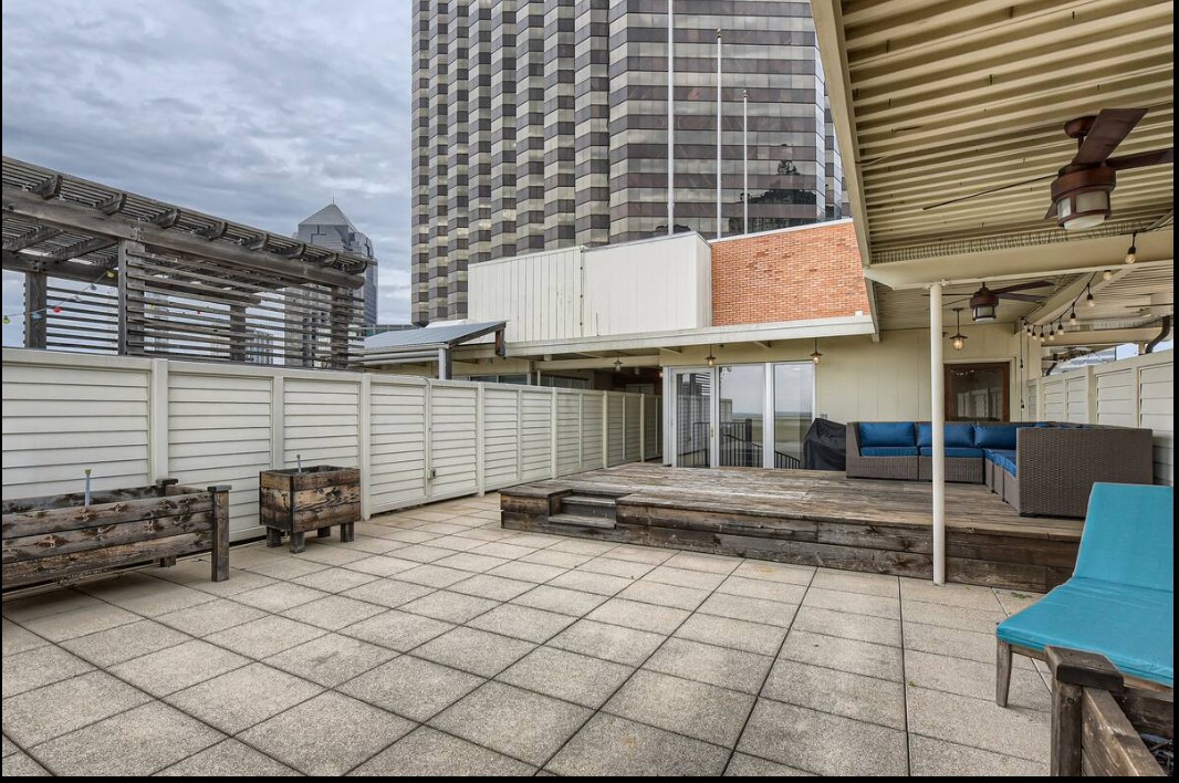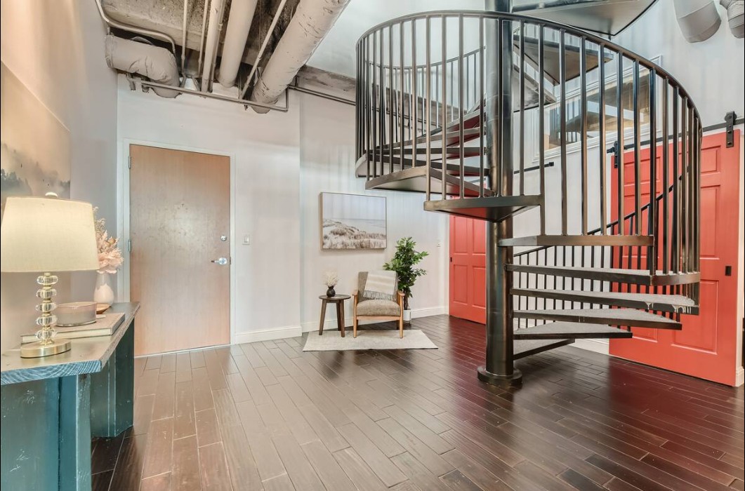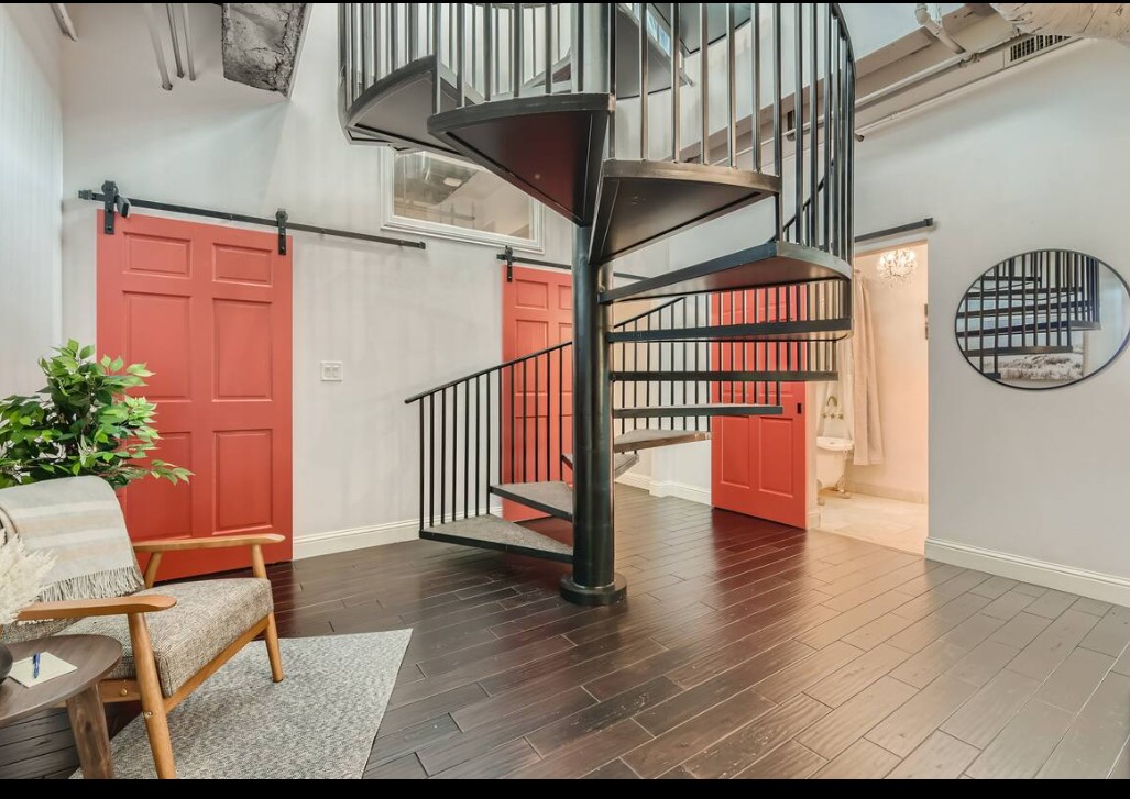 Ascend the industrial staircase to your private rooftop patio—your elevated oasis in the city. Enjoy: