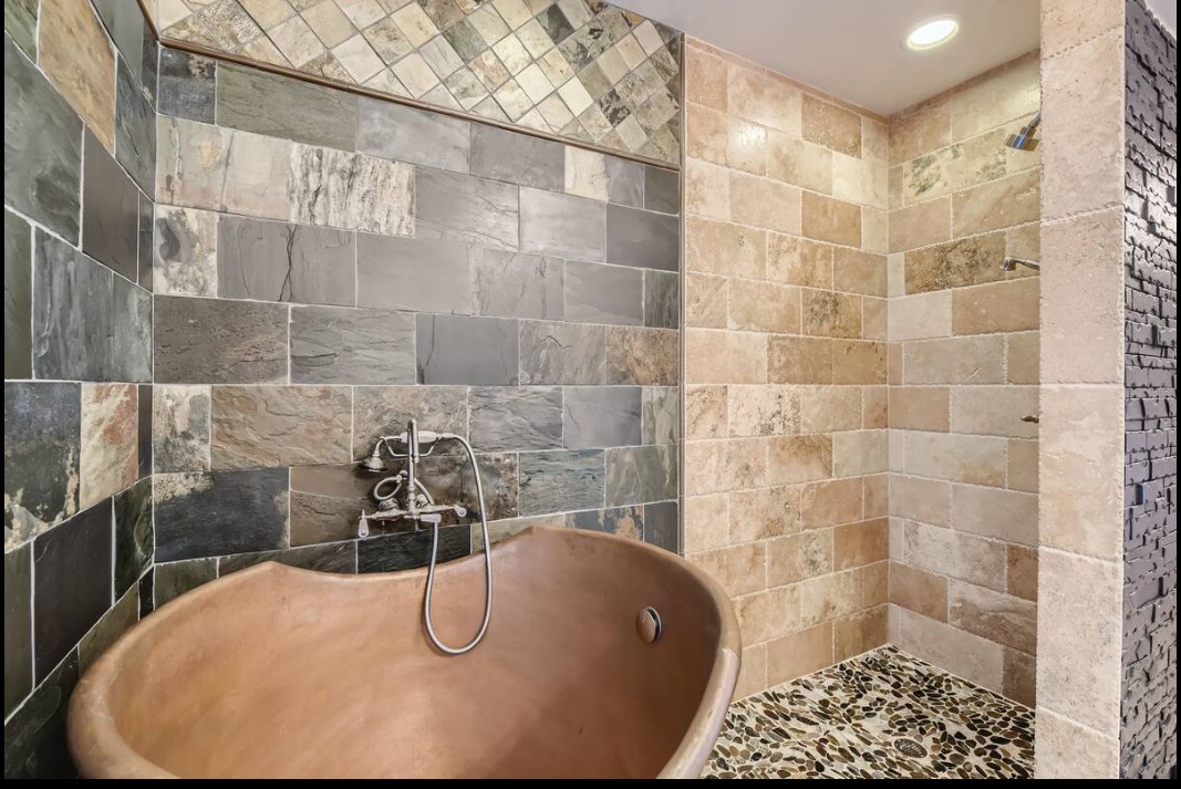 Master Bedroom (1st Floor): Queen bed bath with stunning authentic copper tub, walk-in shower, and double vanity